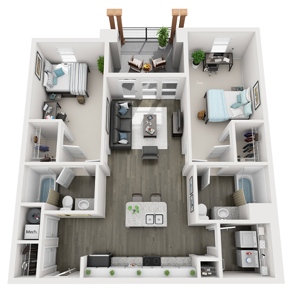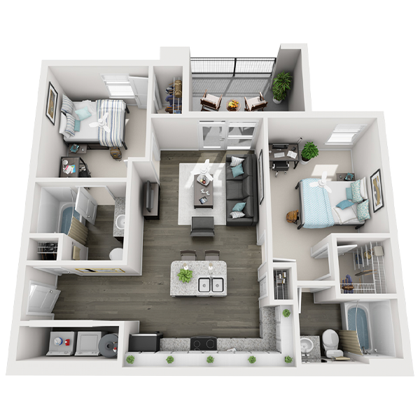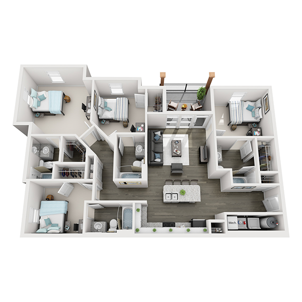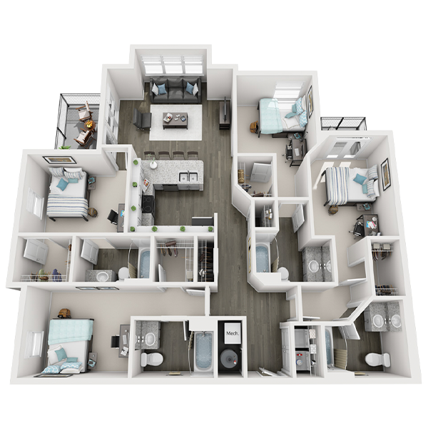 Our FSU student apartments are designed to be a place for residents to thrive. With our central location and diverse amenities, residents are enabled to find a balance between school, work, social life, and self-care. Our spacious floor plans boast private bedrooms and bathrooms for each resident as well as large closets and outdoor space in most units.